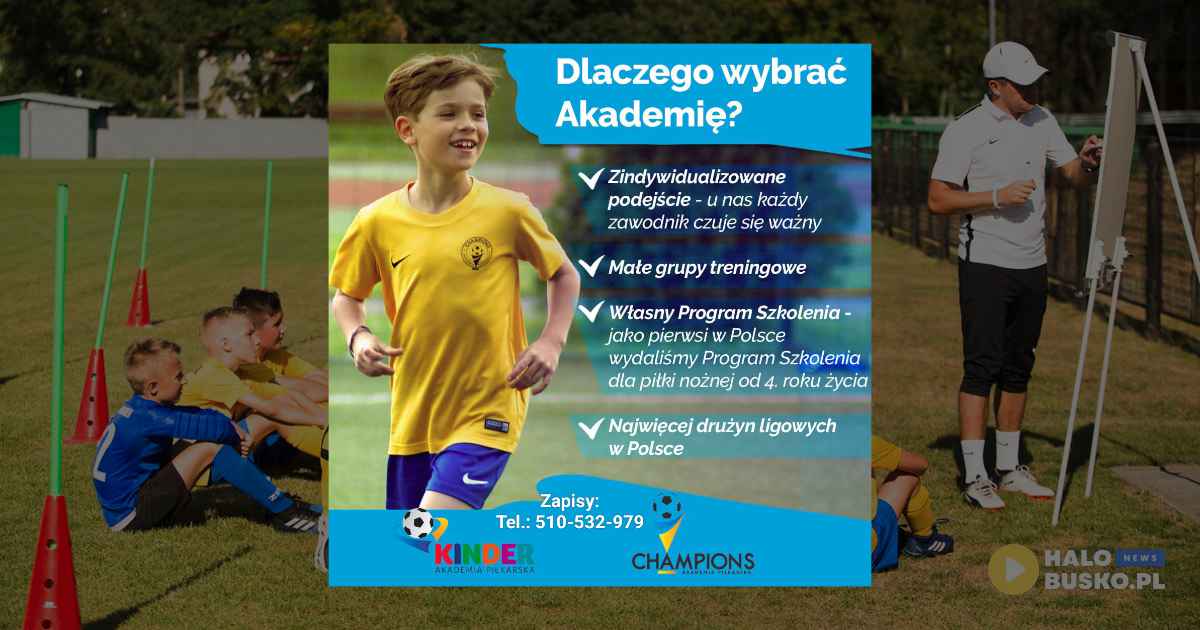 Akademia Champions to dobrze znana marka w regionie. Od ponad 9 lat prowadzi szkolenie dzieci i młodzieży na terenie Buska-Zdroju. Obecnie pod okiem wykwalifikowanej kadry trenerskiej trenuje blisko 200 zawodników z roczników 2011–2020, podzielonych na 15 grup treningowych. Taki podział – na grupy zaawansowane oraz rekreacyjne – pozwala dopasować poziom zajęć do umiejętności i potrzeb każdego dziecka.